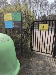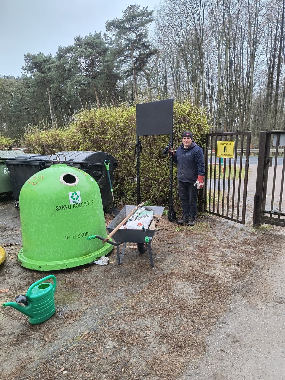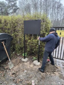 23. marca 2024 r. została posadowiona rama, a 24. marca 2024 r. zostały zamontowane tablice informacyjne. Na tablicach umieszczono informacje na temat odpadów, które zarówno można, jak i nie można, umieszczać w poszczególnych pojemnikach na odpady. Czytelne komunikaty oraz oznaczenia kolorów z pewnością przyczynią się do sumiennego segregowania odpadów przez Działkowców.